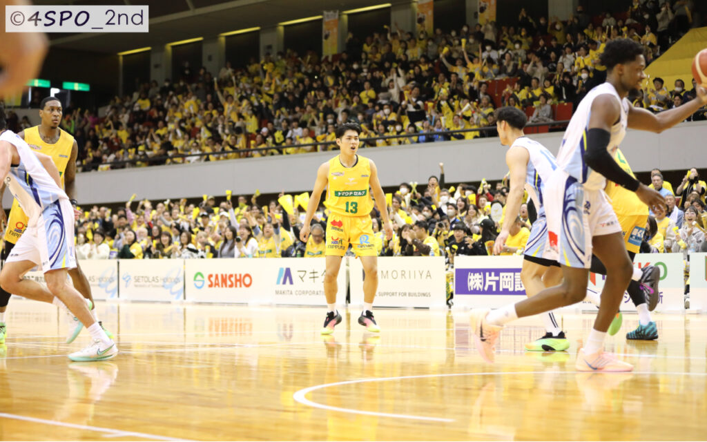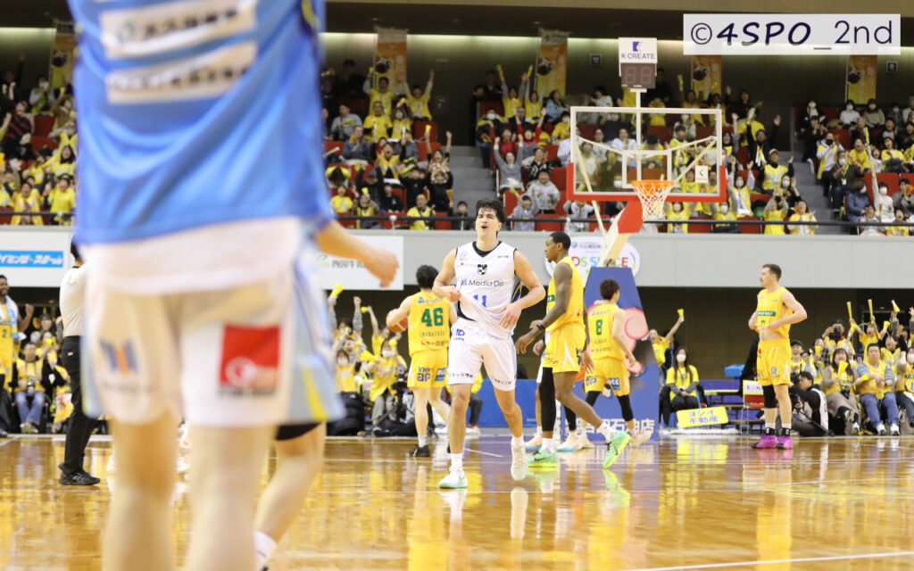 4Q残り4分14秒、徳島のエース・ドーソン選手のわずかな隙を逃さず、その右腕がボールを弾き飛ばした。 呆然と天井を仰ぐリーグ2位のスコアラー。対照的に、値千金のプレーにキャプテンのデイビス選手が吠え、請田選手やランプキン選手が笑顔でハイタッチを交わす。ANI MCの煽りに応えるように、高松市総合に「育実!」コールが幾度も降り注いだ。