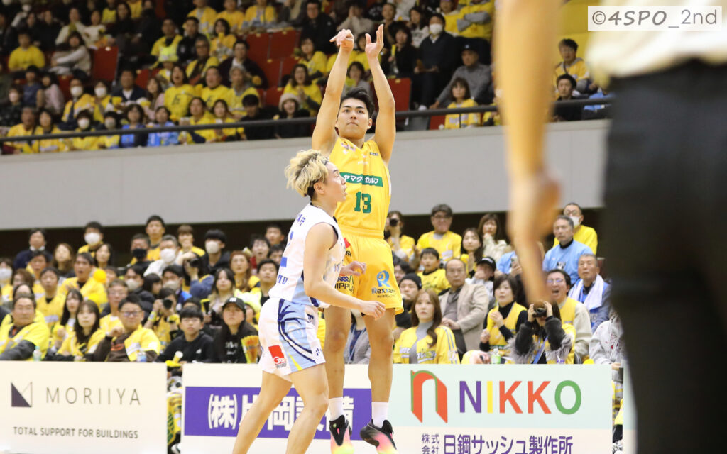 ボルテージが最高潮に達したのは第4クオーターだ。黄色に染まったアローズブースターの導火線に火をつけたのは、背番号13番だった。「ホームで絶対に落とせないという強い気持ちで挑んだ」と試合後、高橋育実選手。
