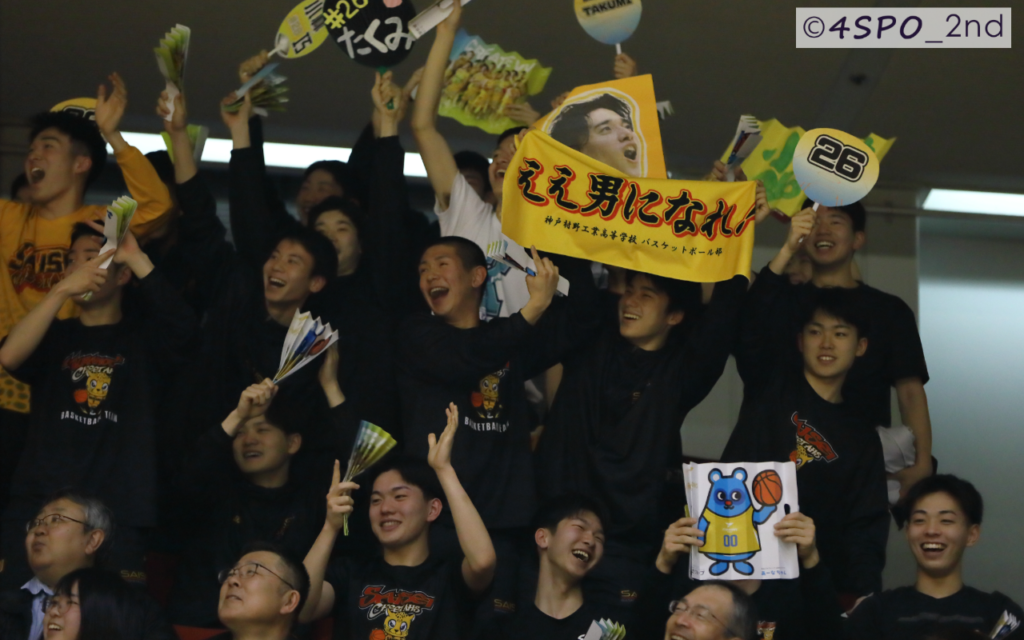 (母校の彩星工科高等学校バスケ部の皆さんが応援に駆けつけてくれていました)